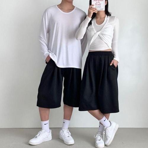 [에이치플러스몰]커플룩 캐쥬얼반바지 면반바지 밴딩 7부 남자반바지