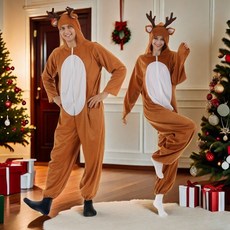 크리스마스 루돌프 코스프레 점프슈트 산타 사슴 남자 여자 코스튬