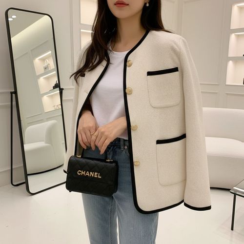 슈팅스타 / 클래식 배색 트위드 노카라 자켓
