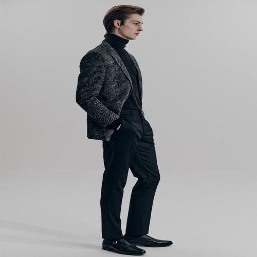 [트루젠]남자 기본핏 간절기/겨울 트위드 라이크 모 혼방 차콜 체크 콤비 자켓_JK