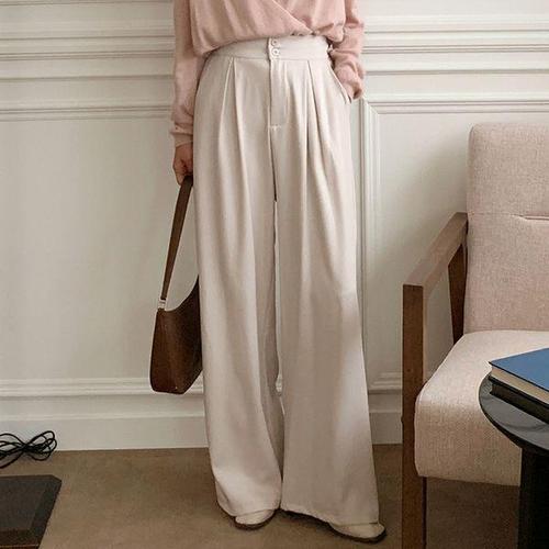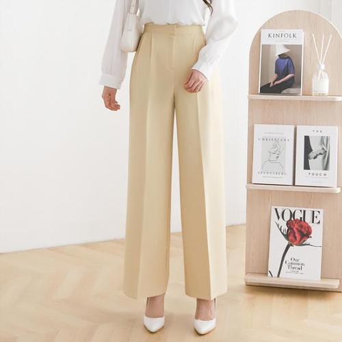 [유야]뒷밴딩 스판 핀턱 와이드 슬랙스 팬츠 바지 하객룩 -PN0525H- 여성 가을