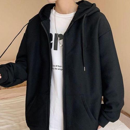 1+1 남자 심플 긴팔 후드티 맨투맨 오버핏 무지 후드집업 빅사이즈 트레이닝복 기모 두꺼운 데일리 캐주얼 상의 루즈핏 학생 아우터 상의