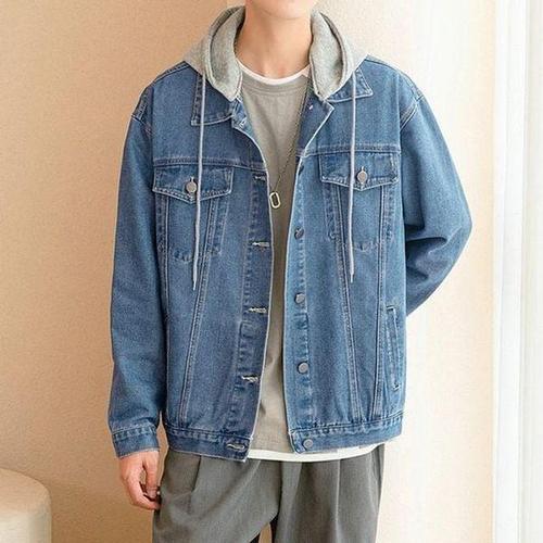 [에이치플러스몰]남성 데님 청자켓 후드 학생옷 캐주얼 여행 패션 코디