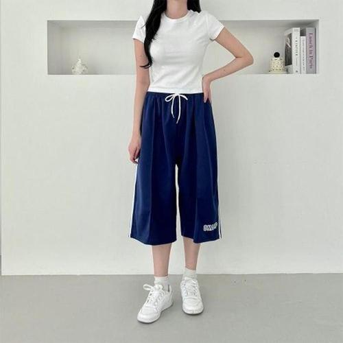 [에이치플러스몰]와이드 신상 청 밴딩바지 휴가 남성 7부 밴딩반바지