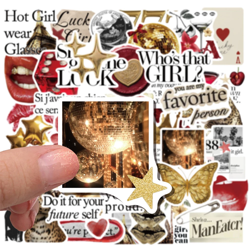 10/30/50개 레트로 아트 골드 & 레드 미학 스티커 만화 장식 스티커 DIY 스케이트보드 헬멧 노트북 귀여운 그래피티 데칼