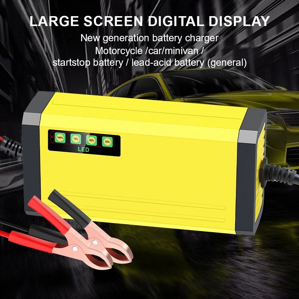 자동차 배터리 충전기 6A 12V 자동차 및 오토바이 배터리 충전 장치 납산 배터리 스마트 수리 LCD 디스플레이