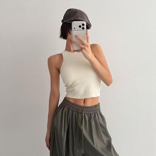 [옷자락]여자 힙한 슬림 캡내장 라운드 골지 민소매 크롭 나시