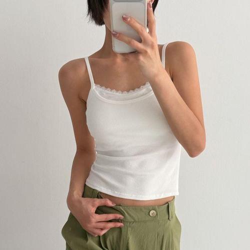 [옷자락]여자 백리스 등트임 레이스 슬림핏 캡내장 크롭 나시