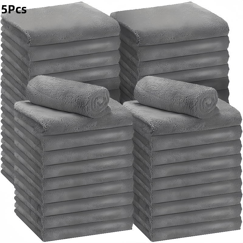 TEMU Hexiaoli 5개 세트, 초미세 섬유 청소 천, 사이즈 40, 64x40, 64cm, 400그램/제곱미터, 초흡수력, 초부드러움, 가벼움, 빠른 건조, 가장자리 없음, 털 없음, 긁힘 없음, 자동차 폴리싱 및 디테일 처리에 적합