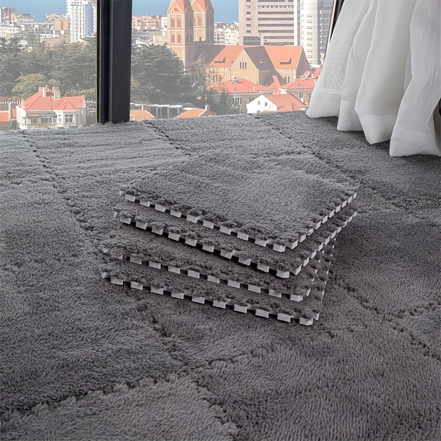 TEMU 20개, 침실용 플러시 인터로킹 매트, 11.8x11.8인치 퍼지 바닥 패드 세트, 놀이방 카펫, 포근한 바닥 커버, 부드러운 표면 매트, 내구성 있는 인터로킹 타일, 타일, 미끄럼 방지 매트