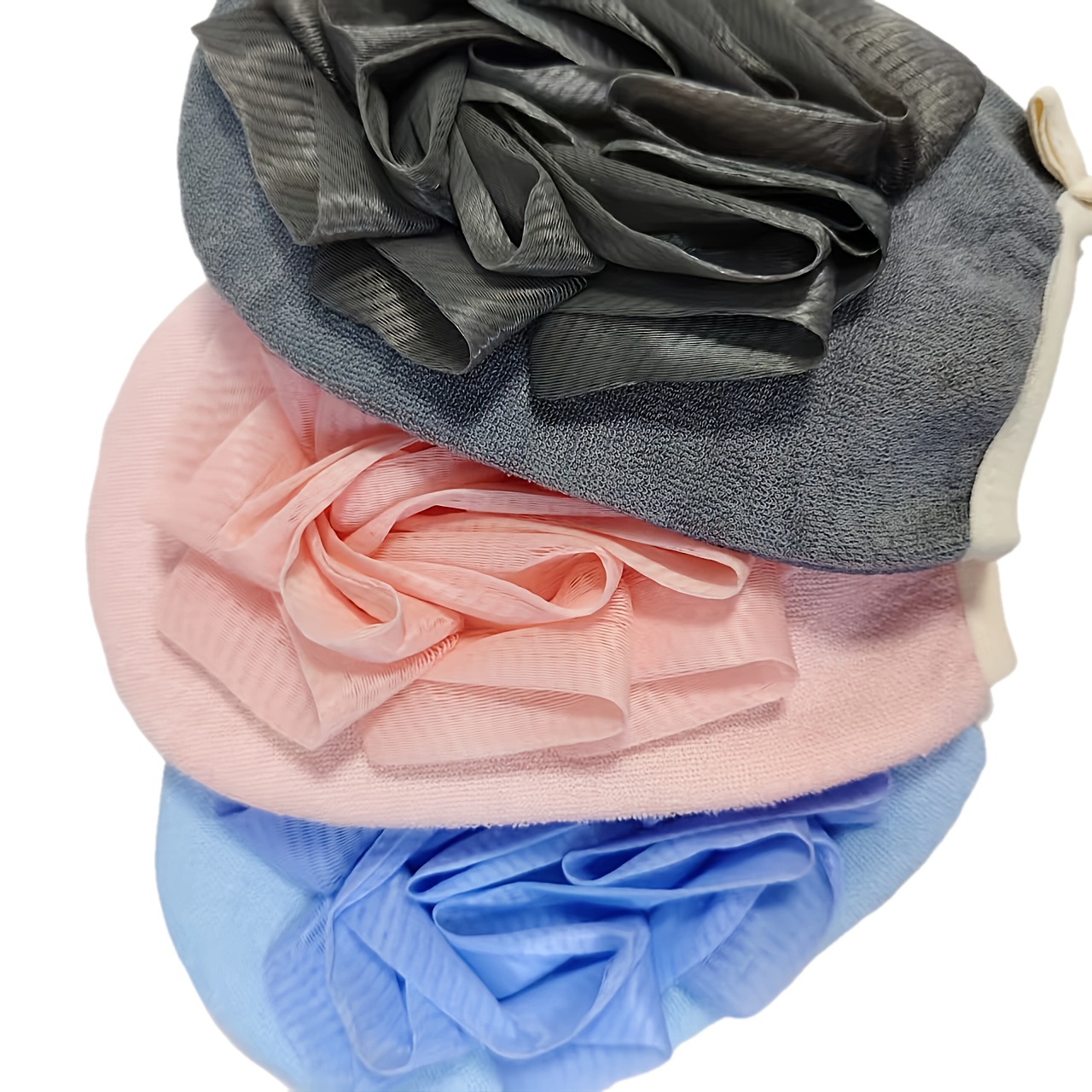 TEMU 3개, 2-in-1 피부 친화적인 플로럴 향기, 목욕 공 목욕 장갑, 양면 스파 스크럽 타월, 각질 제거, 욕실 액세서리, 향신료 없음