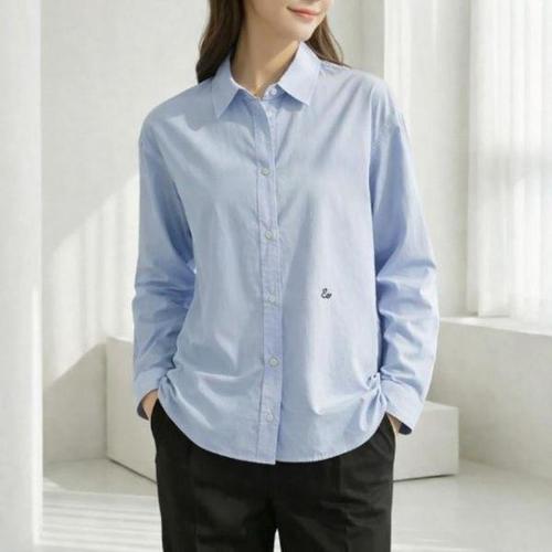 [옷자락] 여자 편안한 데일리룩 내추럴 자수 면 셔츠