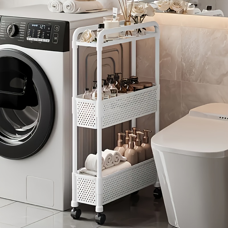 TEMU 공간 절약형 5.12인치 좁은 수납 캐비닛 - 3단 튼튼한 자립형 선반 (바퀴 포함), 무광 블랙 & 화이트 디자인, 욕실, 주방 및 거실에 적합 - 간편한 조립, 30lbs 미만, 수직형 컴팩트 선반 유닛, 선반