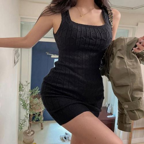 [끌레아]골지원피스 여성 스판 스퀘어넥 민소매 미니원피스