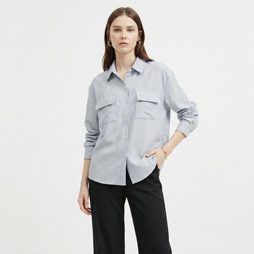 여성 카라넥 양포켓 데일리 하늘 셔츠 블라우스 NARU-WBL-21043-그레이