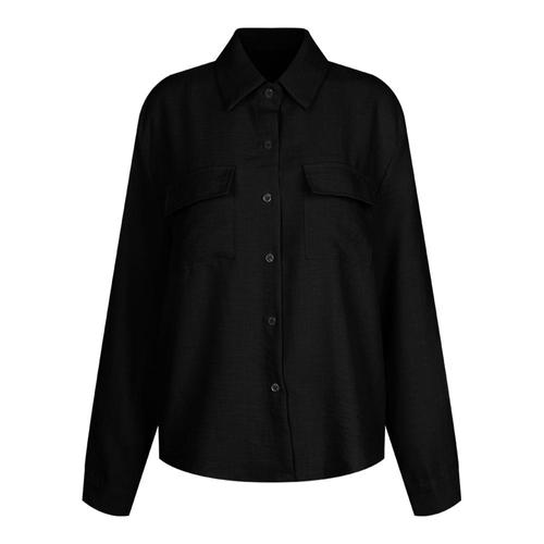 여성 카라넥 양포켓 데일리 하늘 셔츠 블라우스 NARU-WBL-21043-블랙