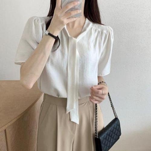 시원하고 우아한 블라우스 여성 넥타이 반팔 WFL9CAT
