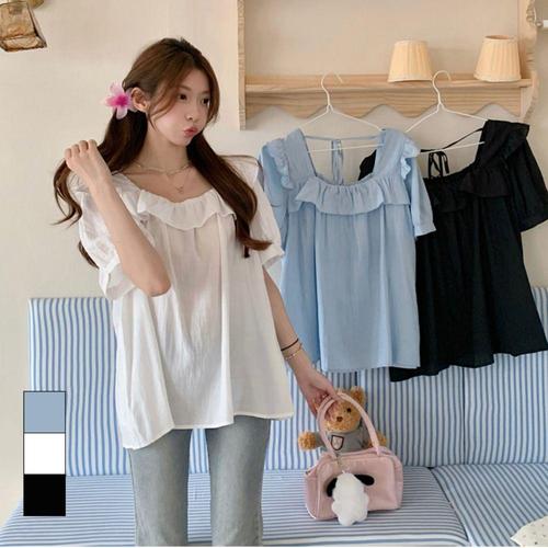 [셀럽하우스]스퀘어넥 OAKL3654 러블리 여성 패션포인트 여름 프릴 블라우스