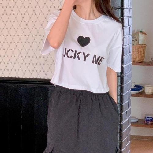 [다잇템][다잇템] 여자 노랑 크롭티 하트티 필기체 수학여행코디 티셔츠_16589343_588872