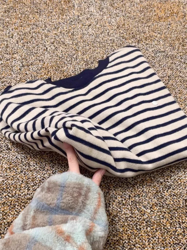 여성 라운드넥 긴팔 티셔츠, 슬림핏 스트라이프 핏, 단색 기본 상의, 용수철 이너 레이업, 밝은 스레드 티, 가을