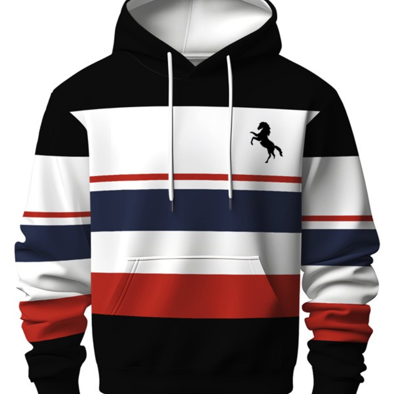 TEMU 남성 패션 캐주얼 드로스트링 후드 스웨트셔츠 | 기하학적 패턴, 레귤러 핏, 약간의 스트레치 원단