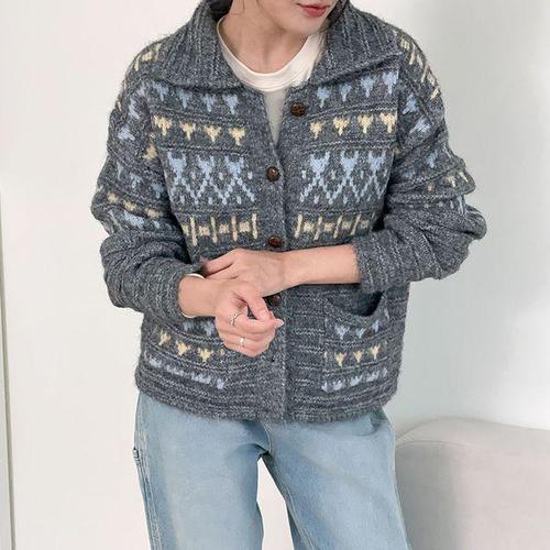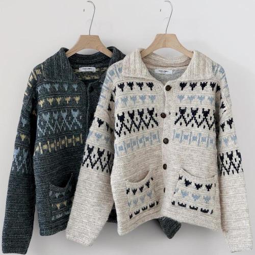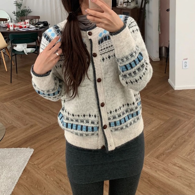 정상가:79,000원 ㅣ 라운드넥 노르딕 패턴 긴팔 가디건 (WICCCD024)