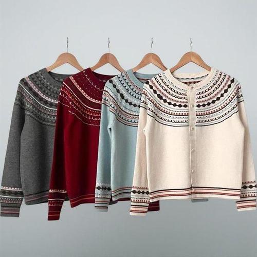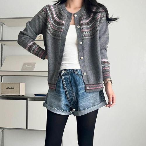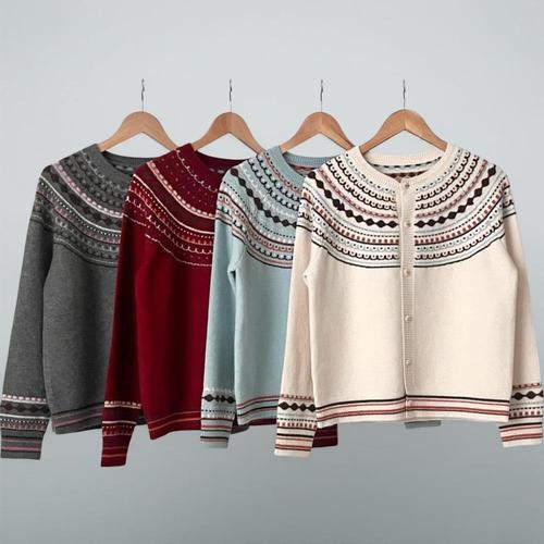 [신상오픈런]여성 노르딕 디자인 배색 라운드넥 포인트 쟈가드 니트 가디건