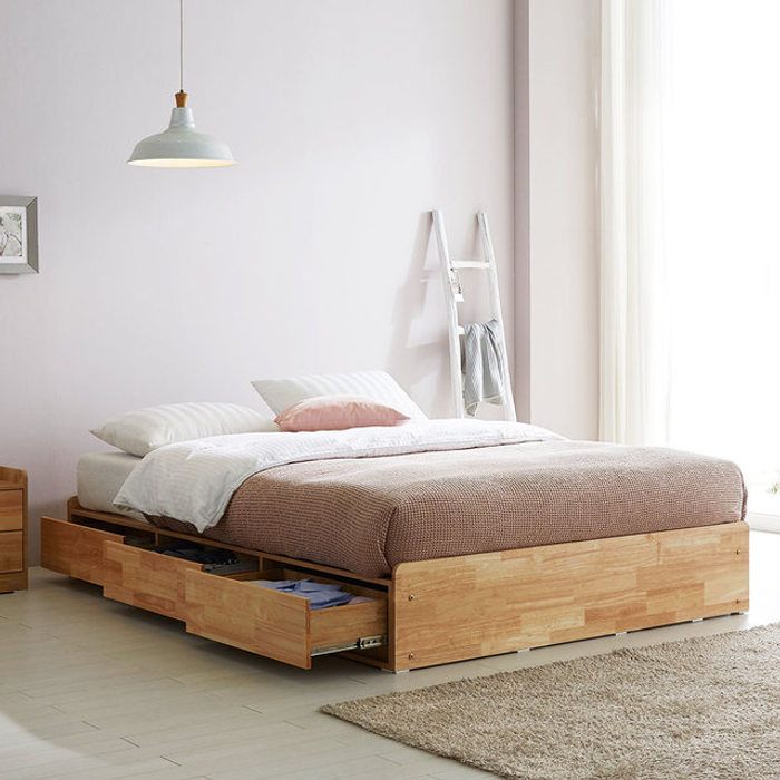 장인가구 [비밀특가] 장인가구 노마 헤드리스 서랍형 수납 원목 침대 프레임 Q