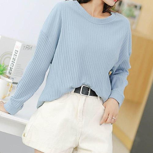 [라일리] Rly 여자 스퀘어넥 상의 노브라티 긴팔 골지 티