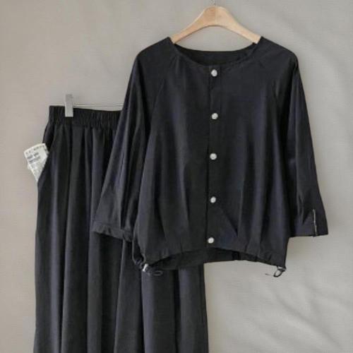 샵앤) 여성 노카라 앞핀턱 반집업 루즈핏 블라우스 셔츠 DGB-WBL-4764-블랙