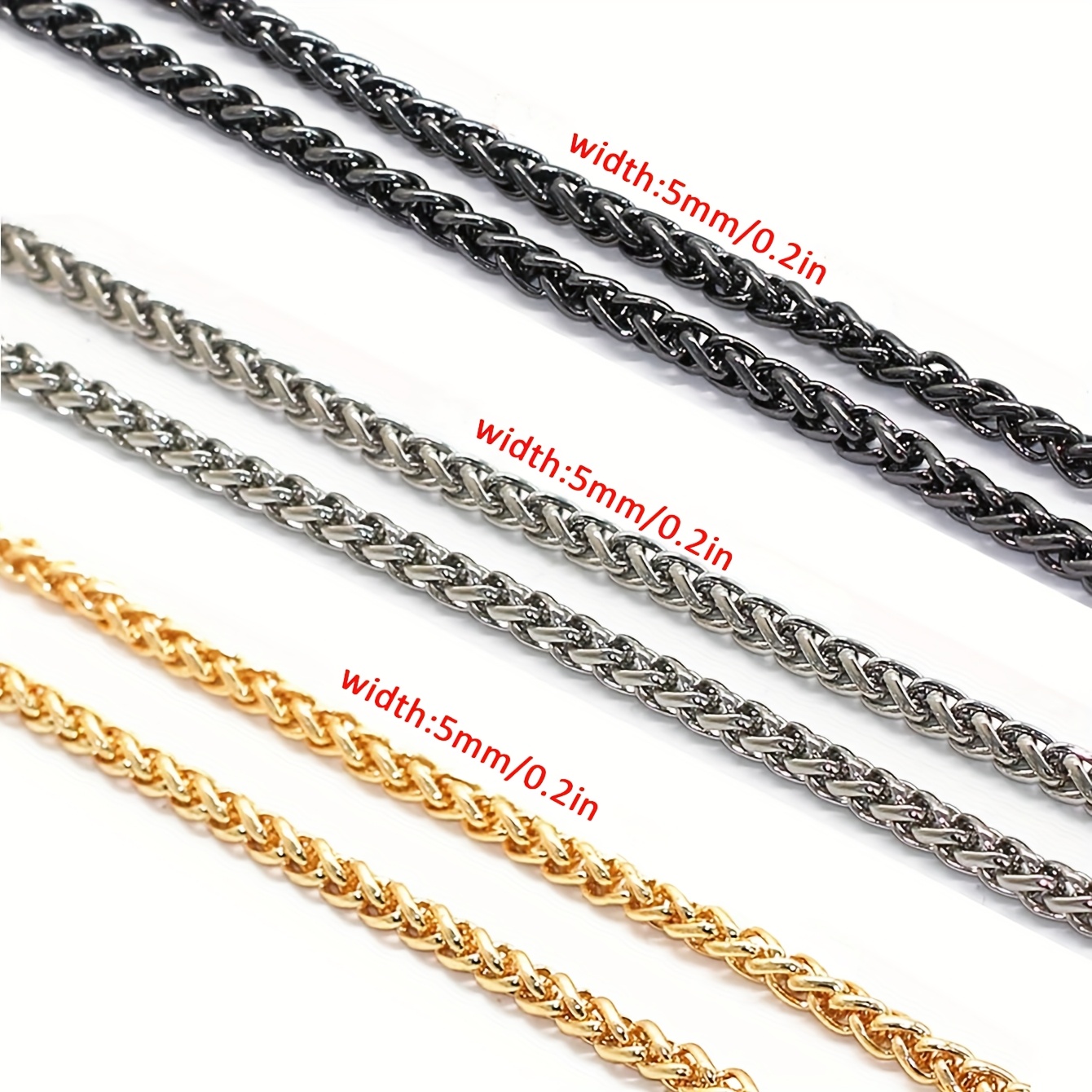 TEMU 1팩 5mm 철제 지갑 체인 스트랩 교체용 - 내구성 강한 철/아연 합금 숄더백, 지갑 DIY & 패션 액세서리용 메탈 버클 포함