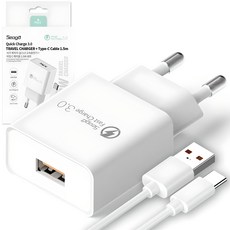 서가 퀵차지 USB 고속 충전기 18W QC3.0 + C타입 케이블 1.5m, 화이트, 1개