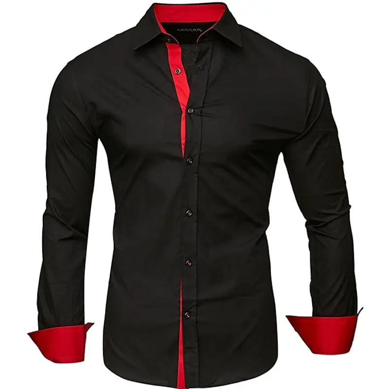 TEMU 남성용 긴팔 슬림핏 비즈니스 캐주얼 셔츠 | 다크 컬러, 주름 방지, 다림질 불필요, 라펠 칼라, 단색, 스키니 핏