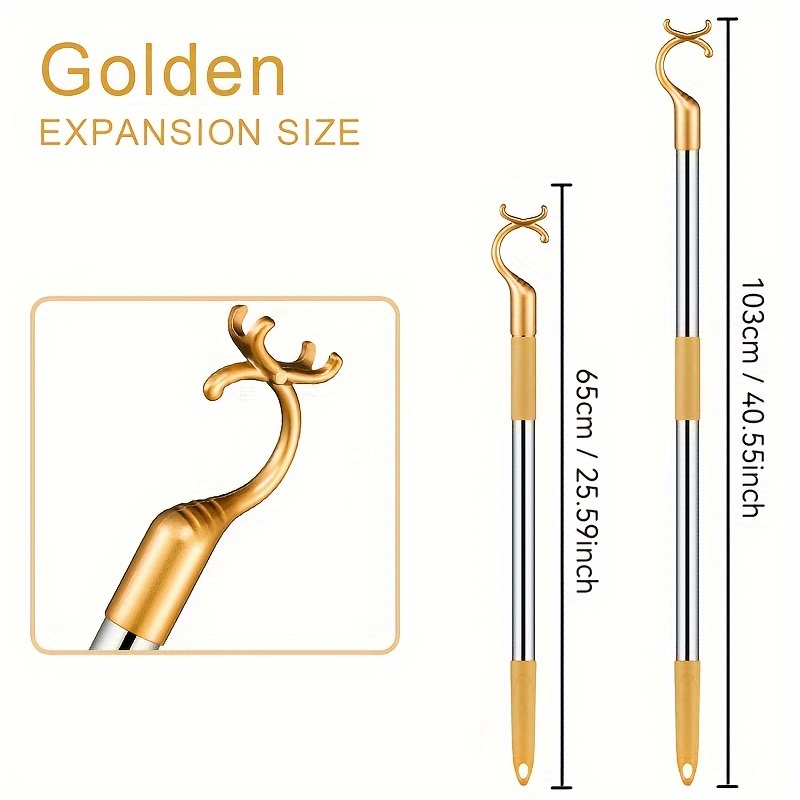 TEMU 1개 스테인리스 스틸 텔레스코픽 옷장 봉, 포크 포함, 조절 가능한 옷걸이 봉, 확장 가능한 옷걸이 도달 막대, 가정용 의류 옷걸이 도구, 내구성 및 매력적인, 플라스틱 재질