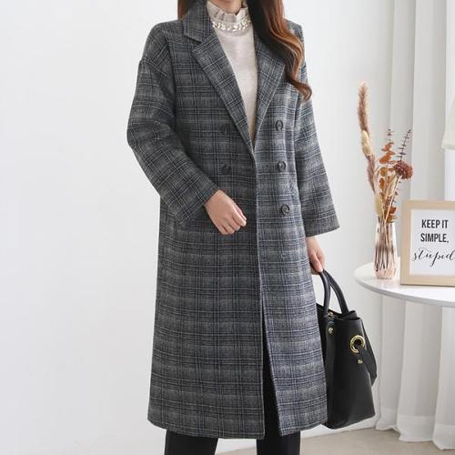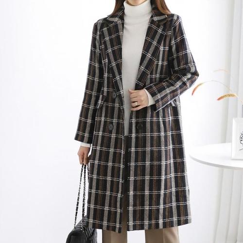 [모리스커밍홈]모던 더블버튼 체크 울 누빔코트_M2111CT703D