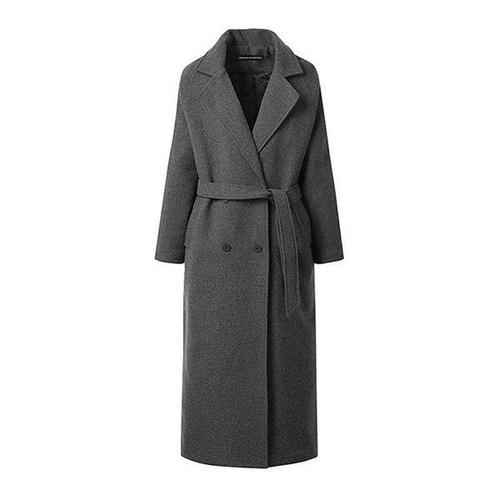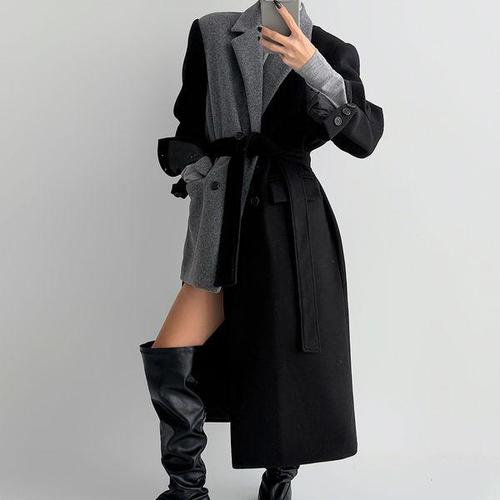 옷자락 / 여자 연말룩 배색 언발 누빔 더블버튼 벨트 울 롱코트