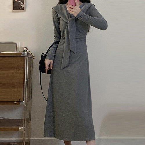 [문에이블]문에이블 여자 여성 봄 가을 간절기 루즈핏 빅사이즈 후드 롱 니트 원피스