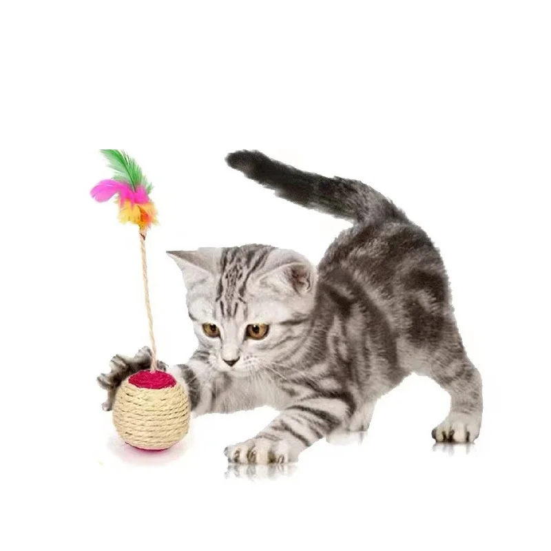다채로운 깃털 고양이 장난감, 고양이 발톱 갈이용 시잘 셔틀콕 볼, 고양이 놀이용 볼, 애완동물 담요 볼