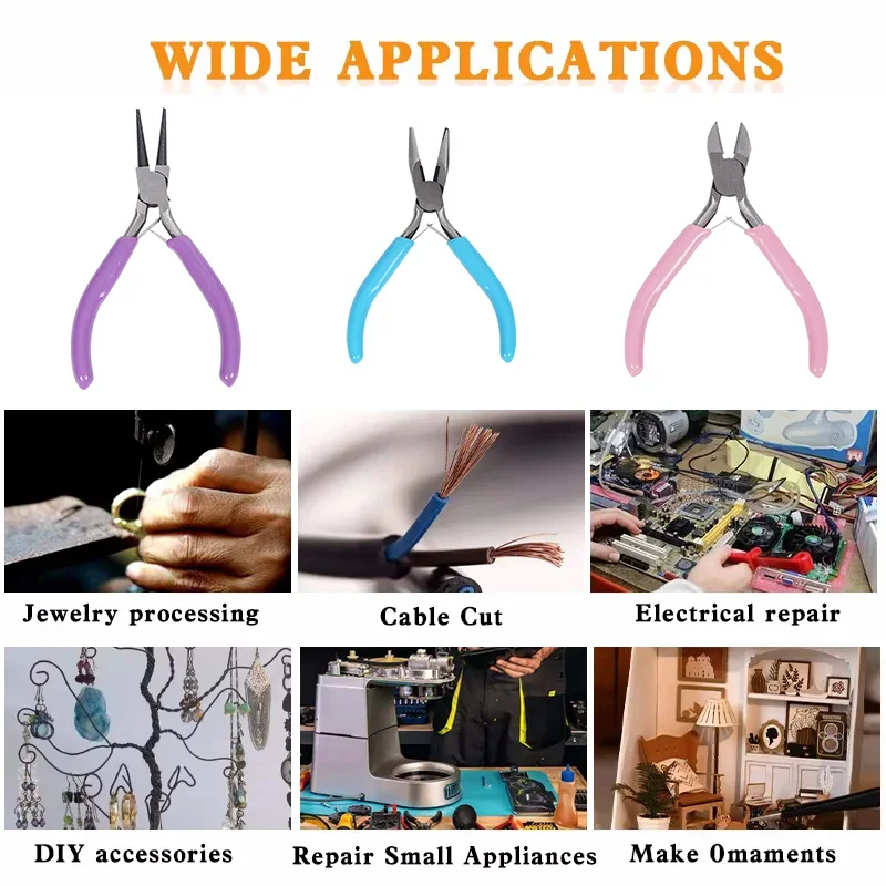 3종 주얼리 제작 플라이어 세트 - 니들 노즈, 체인 노즈, 라운드 노즈 & 와이어 커터 - 보석 수리, 와이어 랩핑에 적합