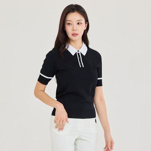 [제이투제이]여성골프웨어 스냅라인 배색 카라니트