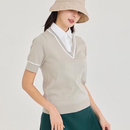 [제이투제이]여성골프웨어 레이어드 브이넥 반소매 니트