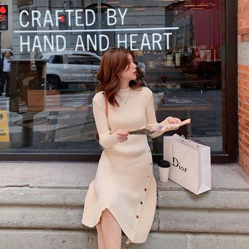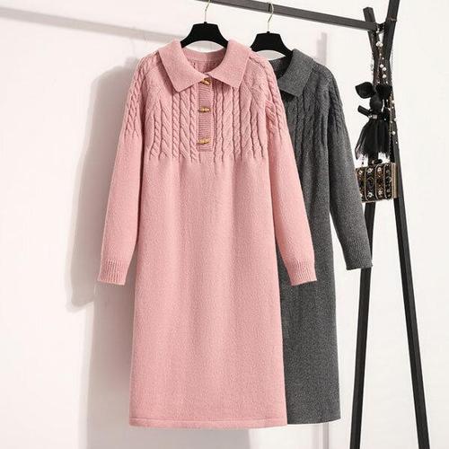 [에이치플러스몰]단추 카라 니트 롱원피스 OD-220415