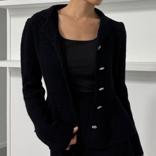 [옷자락]여성용 플레어 니트 가디건 꽃단추 오피스 자켓