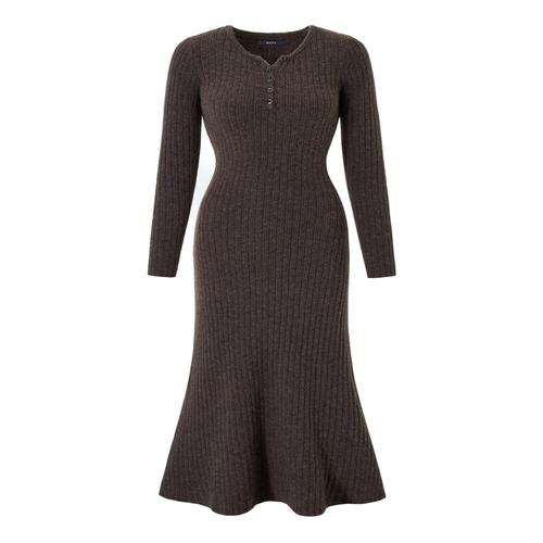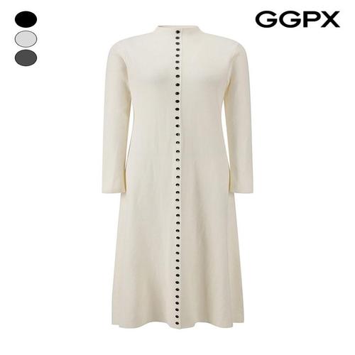 [GGPX]반버튼 골지 플레어 니트 롱 원피스 (GPDOW013D)