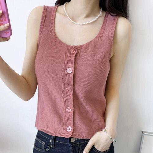 여성 여름 데일리 스퀘어넥 단추 니트탑 나시 민소매 WFHVZ9J