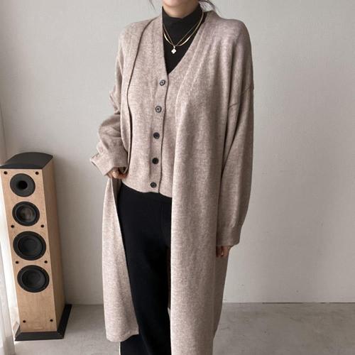 [옷자락]여자 소프트 비스코스 니트 조끼 퍼프 롱가디건 세트_3
