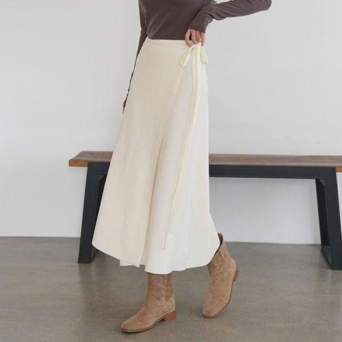 [하늘바라기]델픈 랩 니트 롱 스커트