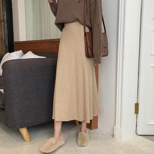 여성 겨울 스웨터 치마 A라인 골지 니트 롱 스커트