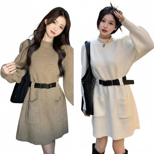 |CCO5906|여성용 미니원피스 벨트 장식 데이트룩 니트 드레스