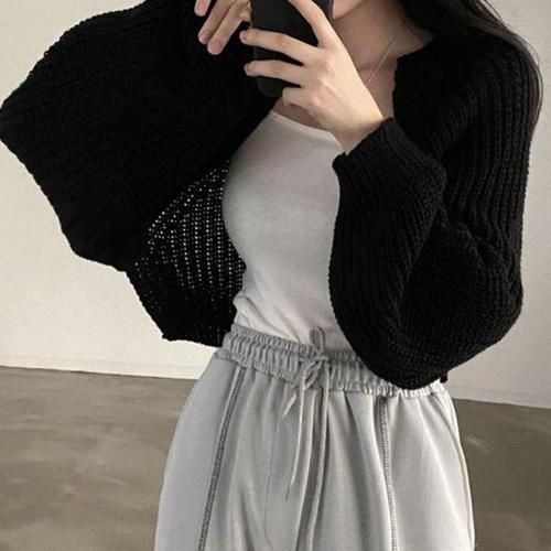[옷자락]여성 데일리 펀칭 짜임 니트 시스루 그물 숏 가디건